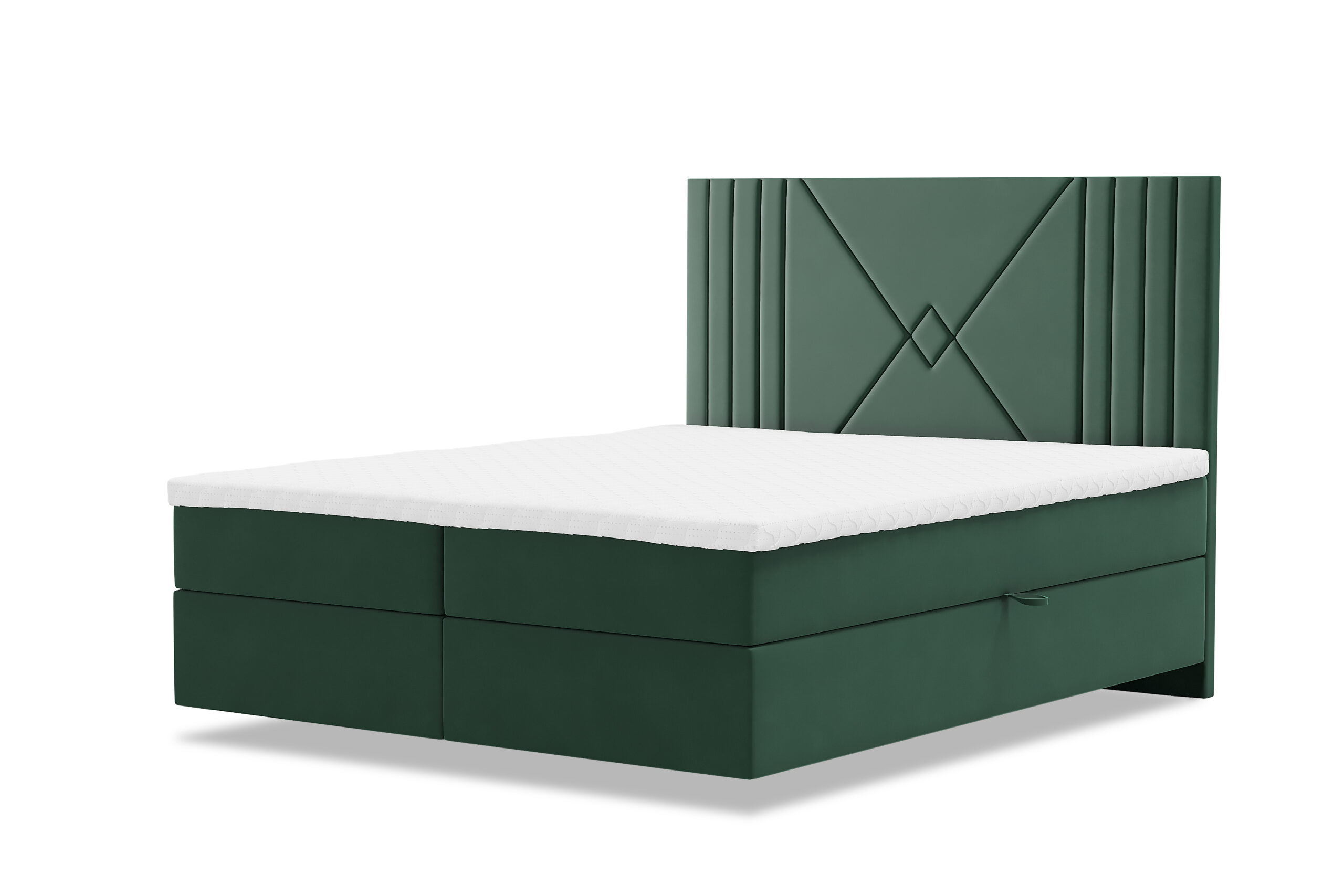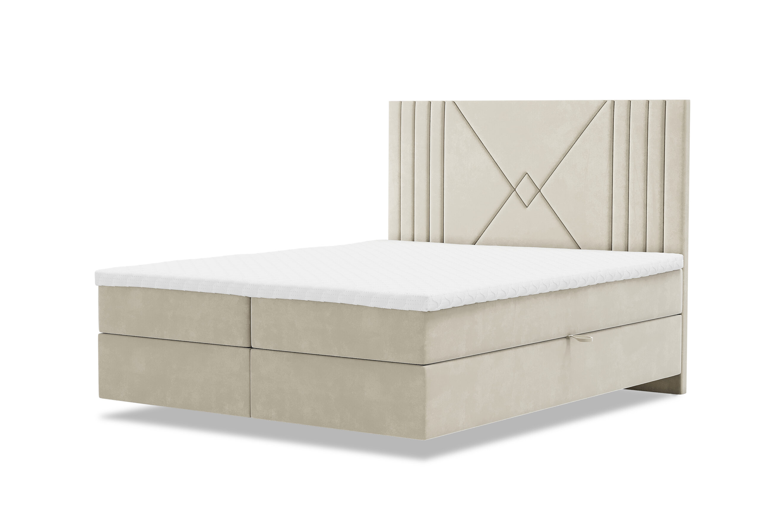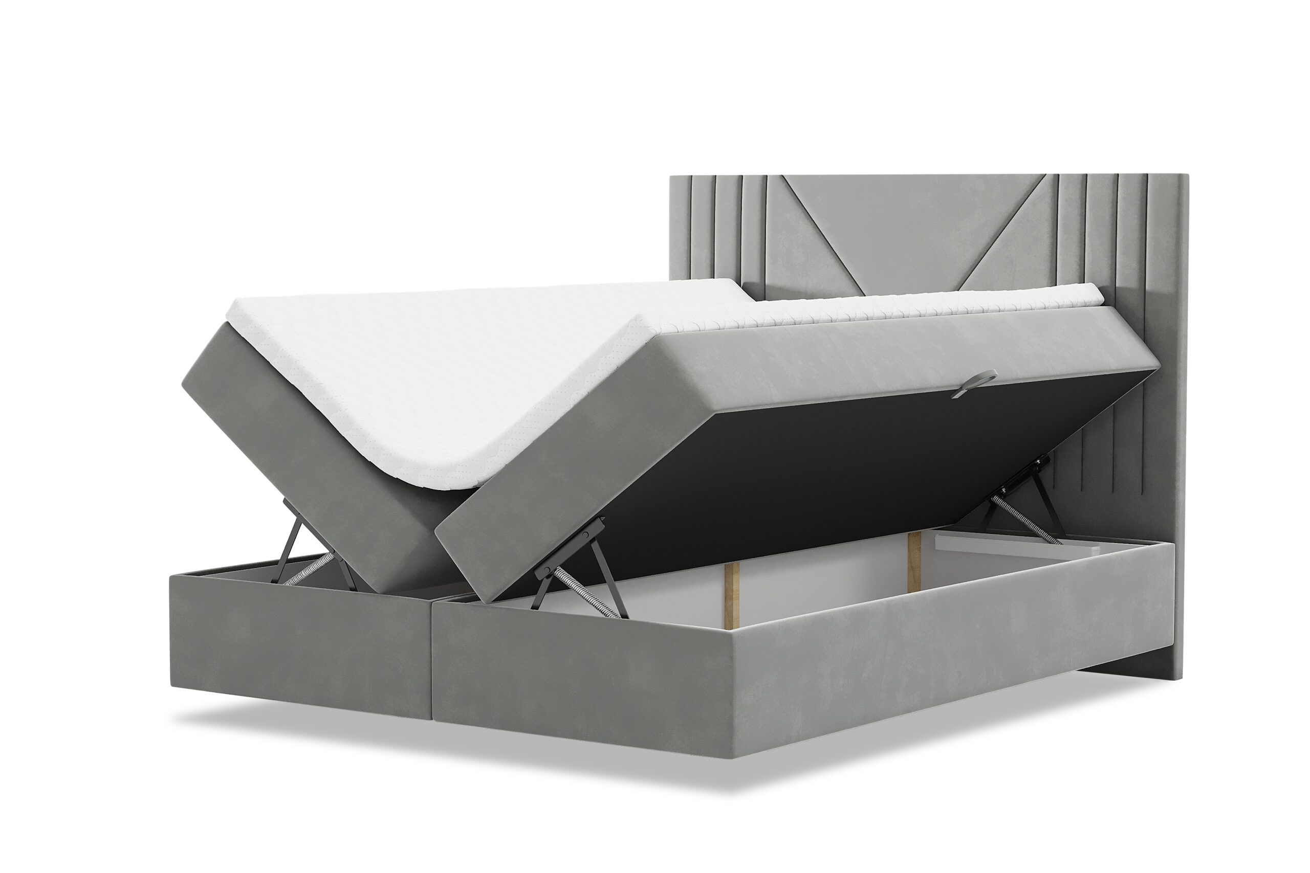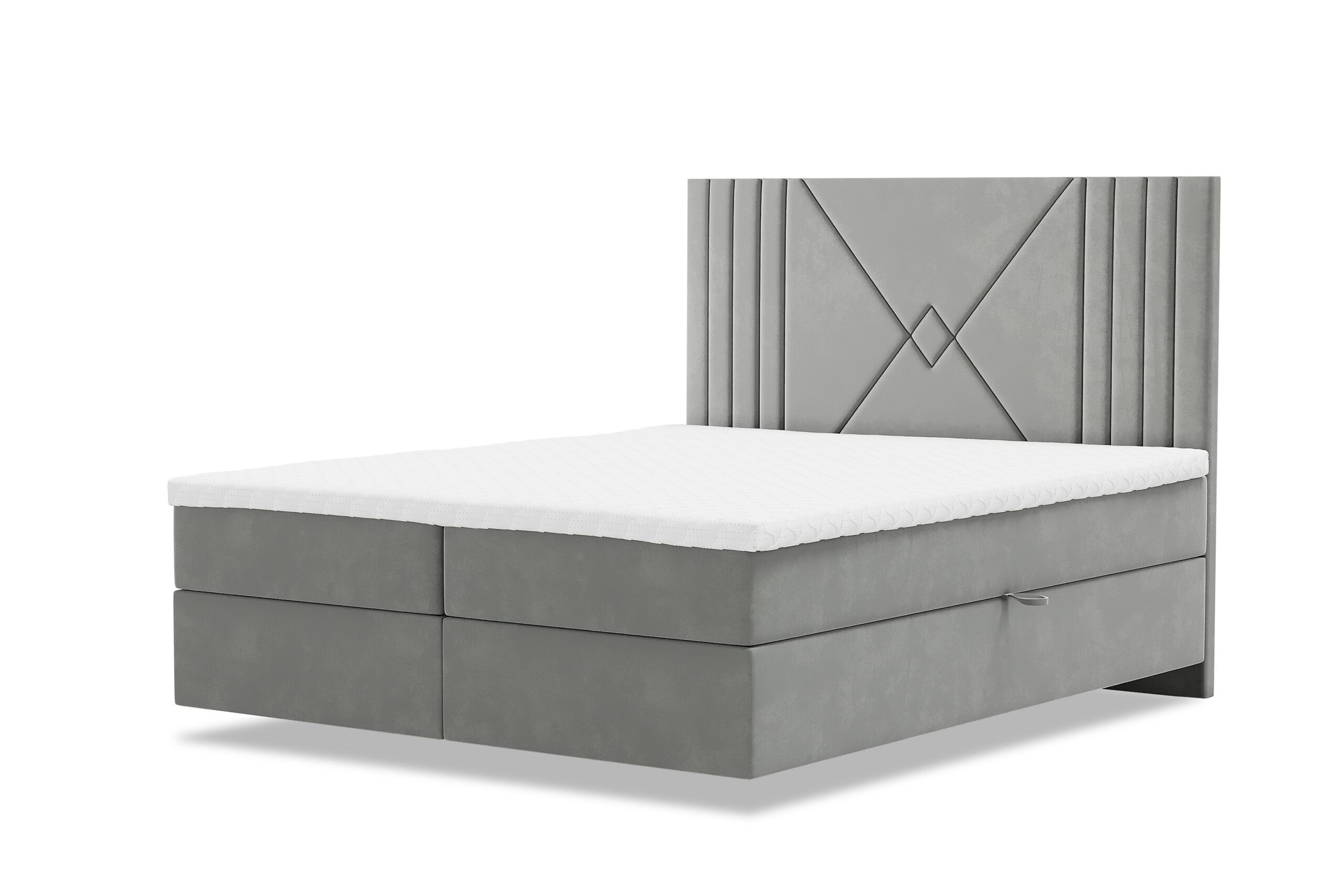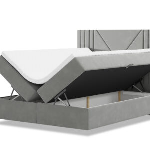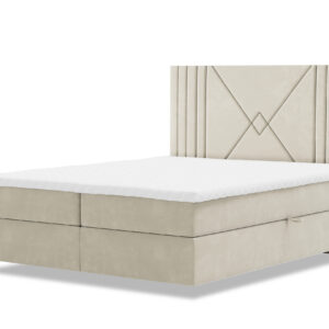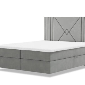Łóżko kontynentalne LOLO z pojemnikami w tkaninie welur to stylowy i praktyczny mebel do sypialni. Łóżko to posiada trzy warstwy: stelaż, materac i topper. Jednak w tym przypadku, stelaż jest wyposażony w pojemniki, które pozwalają na przechowywanie pościeli lub innych przedmiotów.