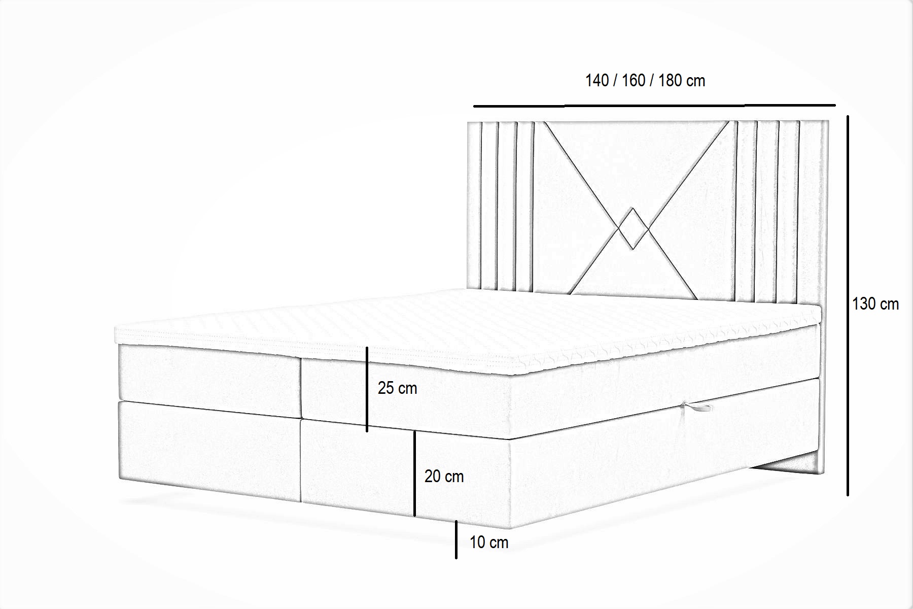 – Wezgłowie Przeszywane na piance o grubości 3 cm.