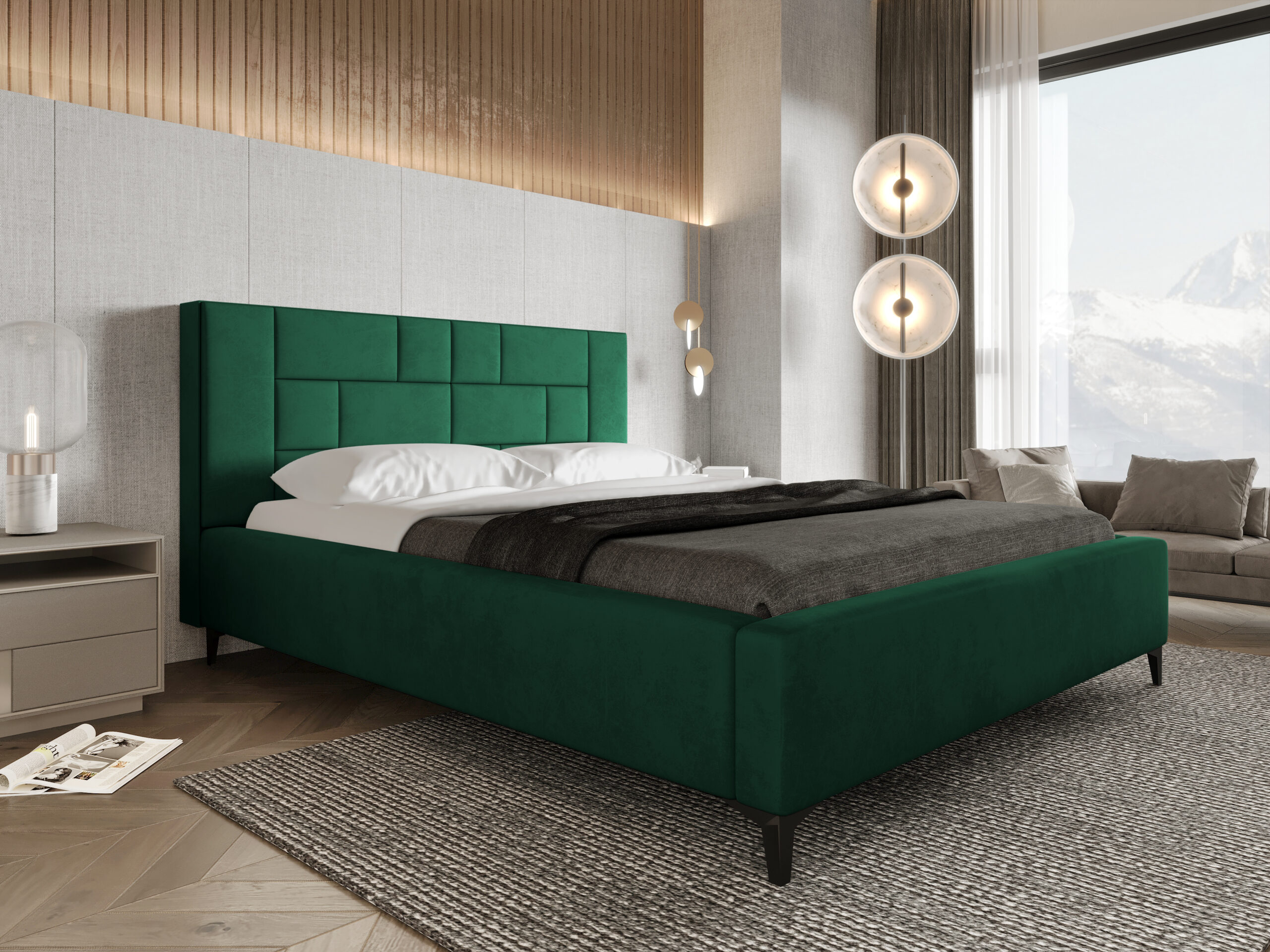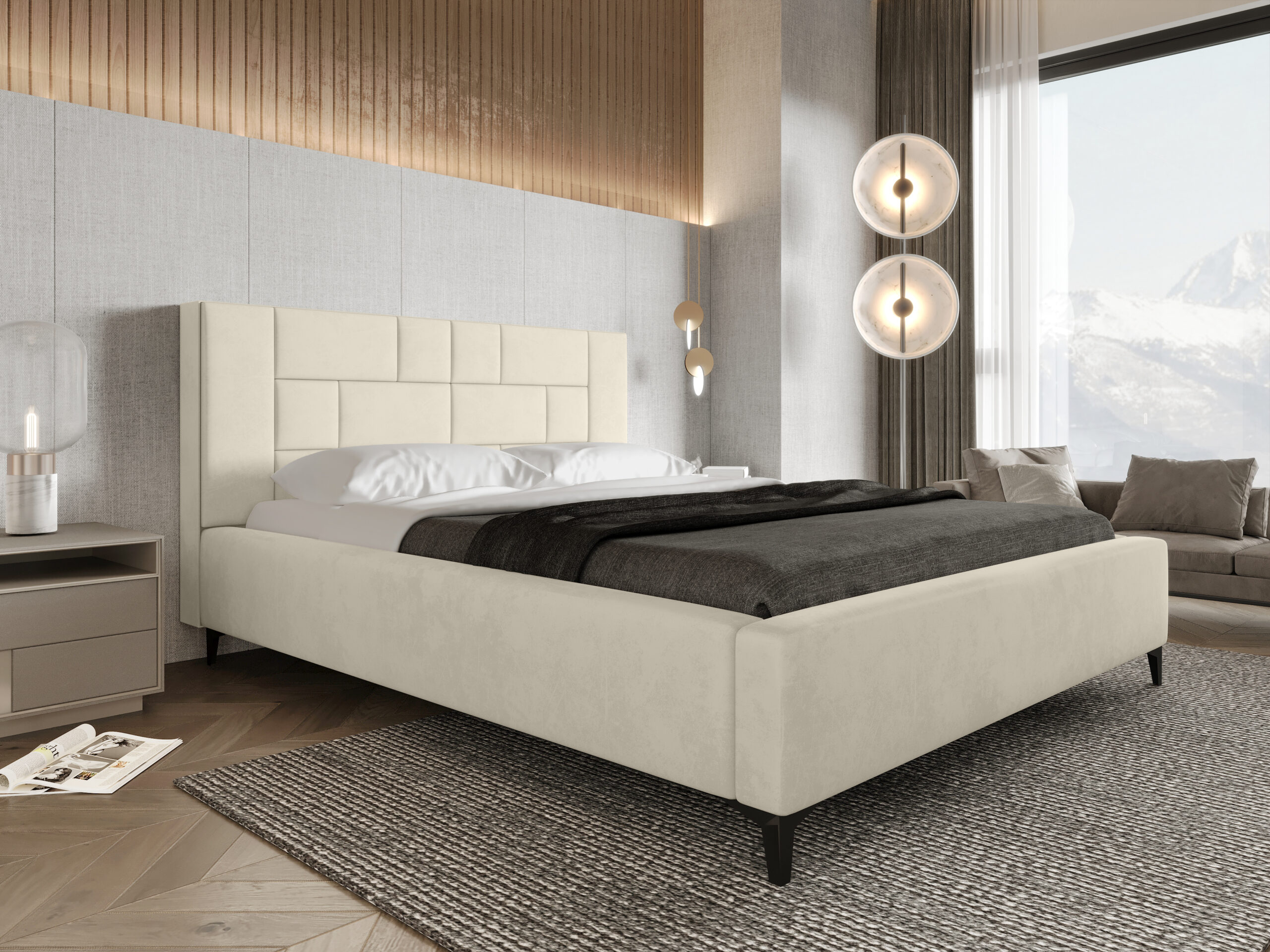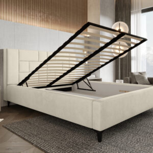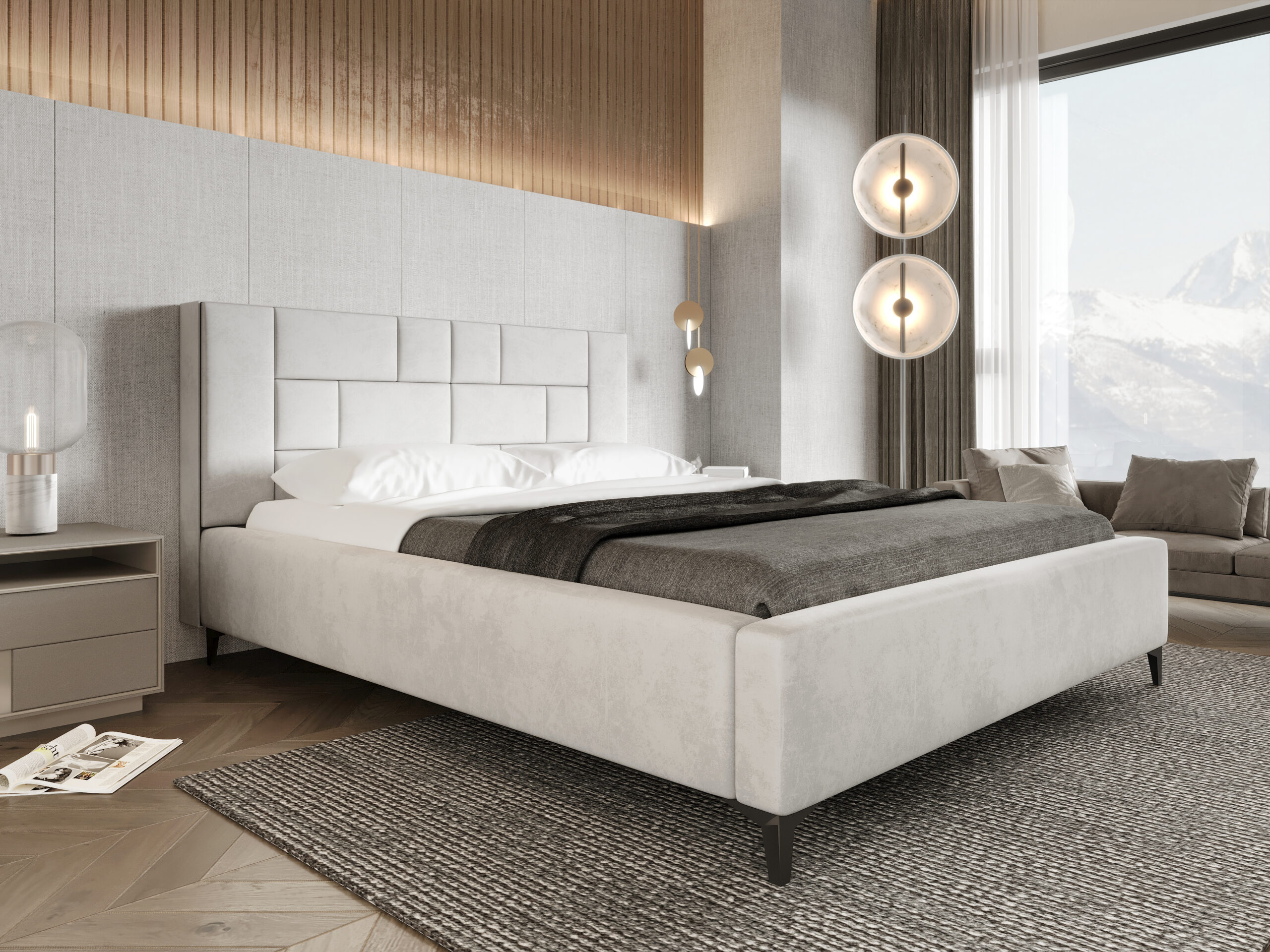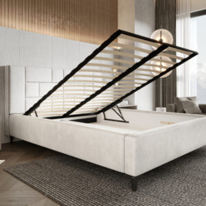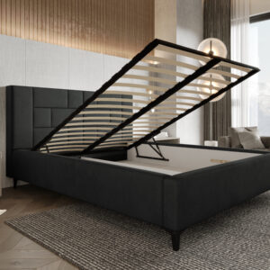 Łóżko Porto idealnie nadaje się do każdej sypialni, dzięki bardzo wytrzymałemu stelażowi wraz z pojemnikiem na pościel łóżko jest bardzo funkcjonalne, dodatkowo metalowe nóżki dodają stabilizacji oraz pięknego wyglądu. Na aranżacji przedstawione jest łóżko metalowym stelażem z gazowym podnośnikiem, stelaż posiada 34 drewniane listwy po 17 na stronę, które są bardzo wytrzymałe dzięki czemu stelaż będzie nam służył długie lata, oraz bardzo przyjemny w dotyku i czyszczeniu materiał welurowy MAGIC VELVET.