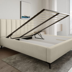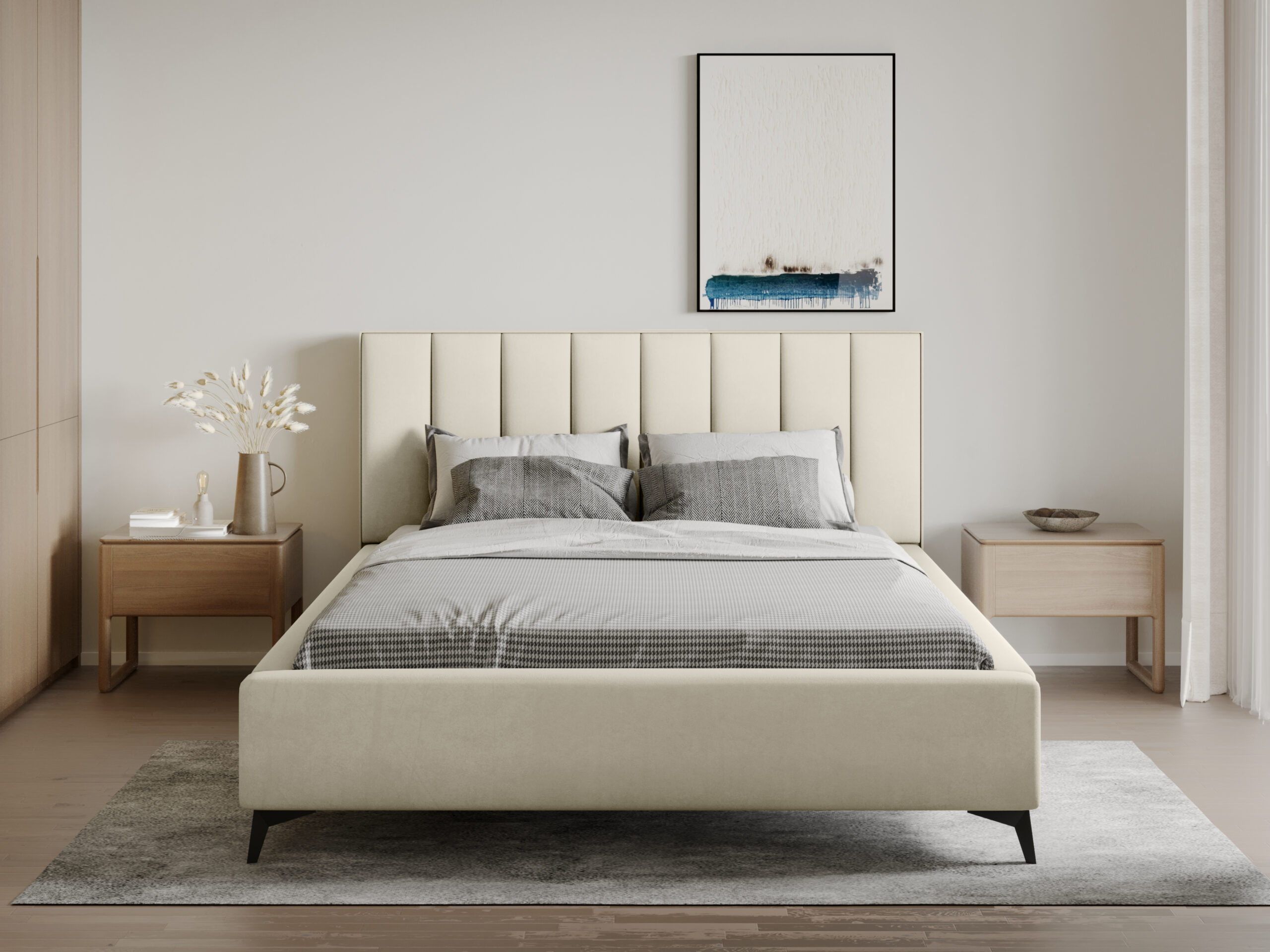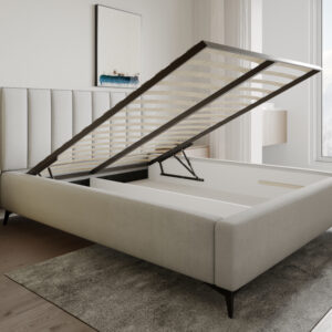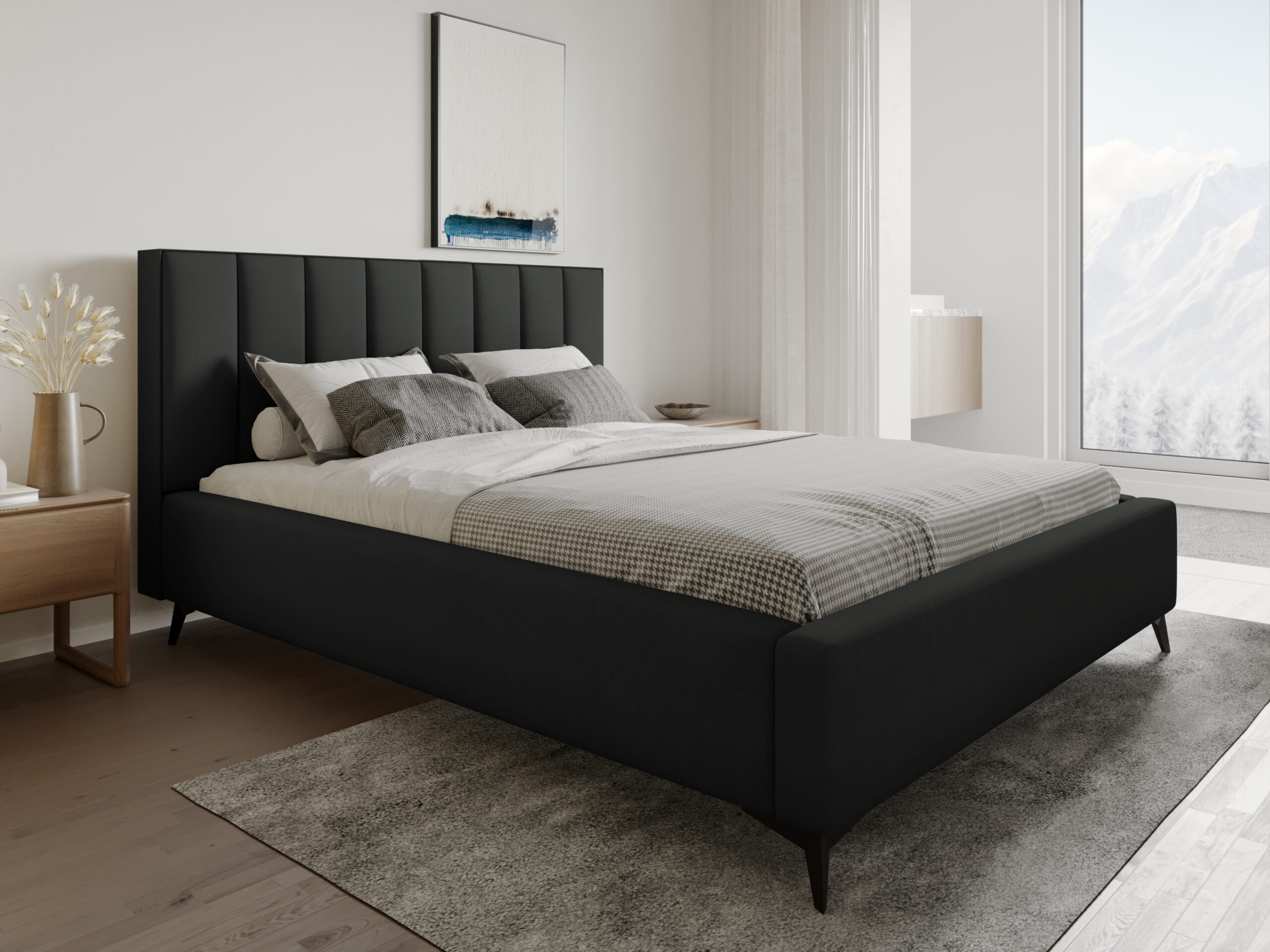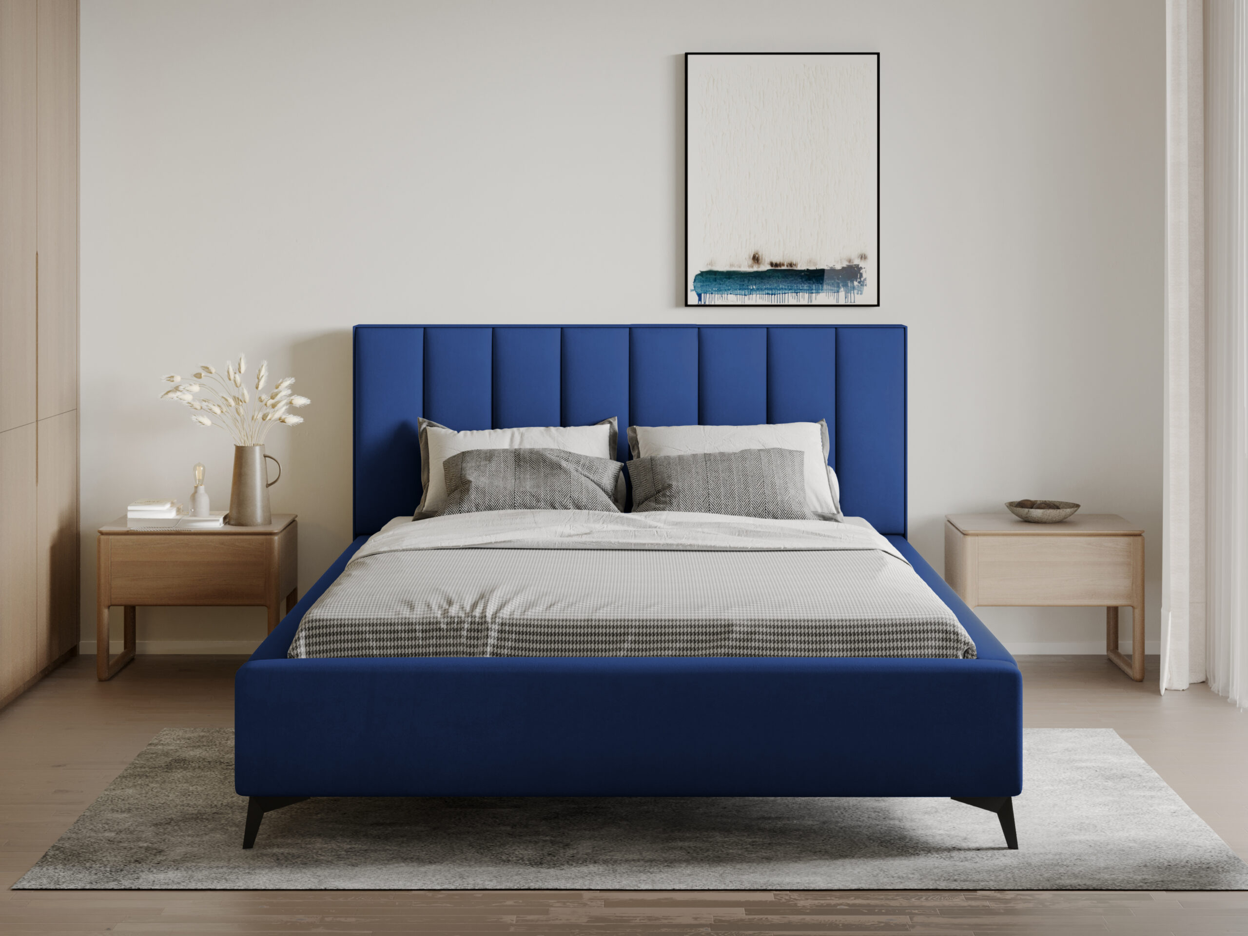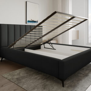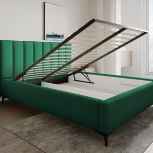 Łóżko Berlin idealnie nadaje się do każdej sypialni, dzięki bardzo wytrzymałemu stelażowi wraz z pojemnikiem na pościel łóżko jest bardzo funkcjonalne, dodatkowo metalowe nóżki dodają stabilizacji oraz pięknego wyglądu. Na aranżacji przedstawione jest łóżko metalowym stelażem z gazowym podnośnikiem, stelaż posiada 34 drewniane listwy po 17 na stronę, które są bardzo wytrzymałe dzięki czemu stelaż będzie nam służył długie lata, oraz bardzo przyjemny w dotyku i czyszczeniu materiał welurowy MAGIC VELVET.