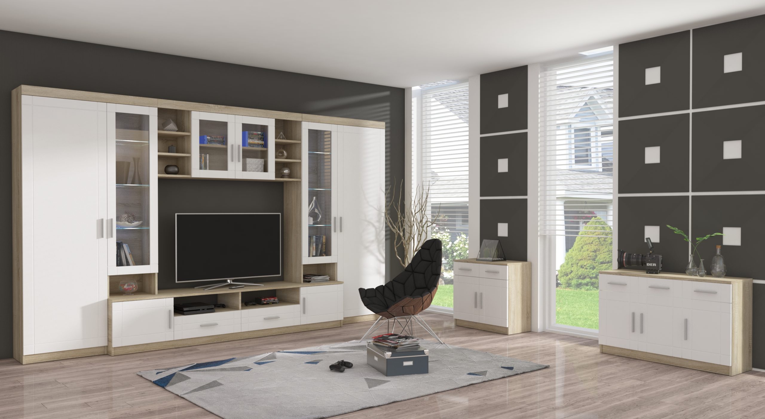 Cena wyjściowa nie obejmuje oświetlenia LED, istnieje możliwość dokupienia LED do meblościanki – należy wybrać odpowiedni wariant produktu.