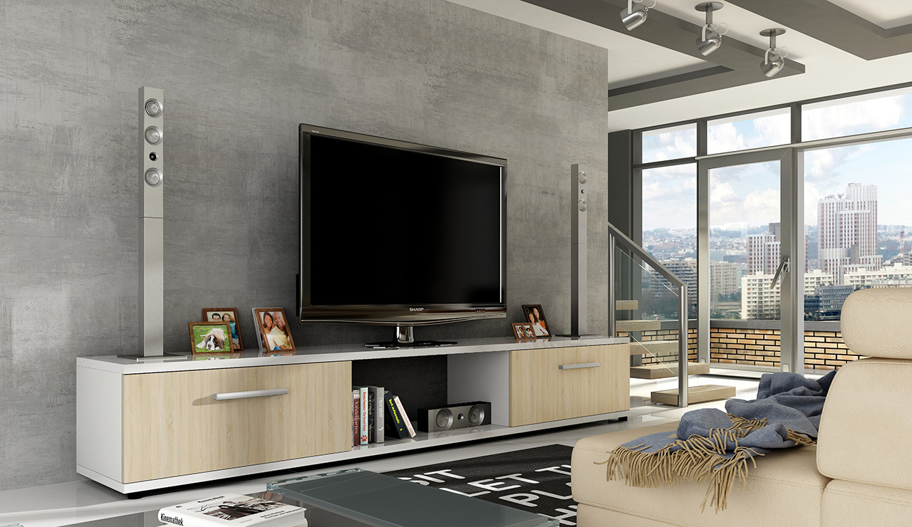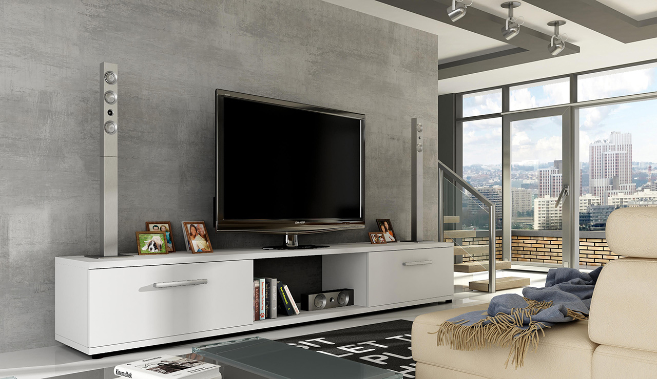 Szafka RTV Malco o nowoczesnym kształcie nadającym jej geometryczną formę. Doskonała tam, gdzie nie potrzeba całych zestawów meblowych. Idealna do każdego rodzaju pomieszczenia oraz pod każdy telewizor. Wykonana z najwyższej jakości płyty laminowanej, dzięki czemu można cieszyć się pięknym meblem przez wiele długich lat. Do każdego mebla dołączamy elementy montażowe oraz instrukcję montażu, aby montowanie było czystą przyjemnością.