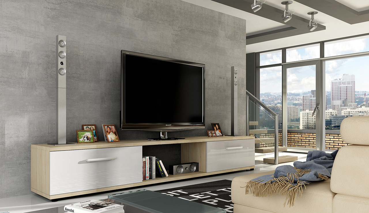 Szafka RTV Malco o nowoczesnym kształcie nadającym jej geometryczną formę. Doskonała tam, gdzie nie potrzeba całych zestawów meblowych. Idealna do każdego rodzaju pomieszczenia oraz pod każdy telewizor. Wykonana z najwyższej jakości płyty laminowanej, dzięki czemu można cieszyć się pięknym meblem przez wiele długich lat. Do każdego mebla dołączamy elementy montażowe oraz instrukcję montażu, aby montowanie było czystą przyjemnością.