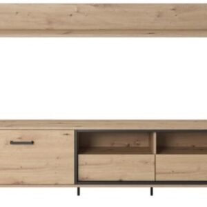 Stolik RTV + Półka Nest to naturalne dębowe drewno „przełamane” zostało kontrastową antracytową ramką, podkreślającą unikatowy wygląd mebla. Subtelne uchwyty oraz nóżki, nawiązujące do antracytowej ramki, sprawiają, że całość prezentuje się niezwykle okazale. Kolekcja NEST sprawdzi się w wielu aranżacjach, zarówno tych jasnych, nowoczesnych, jak i bardziej surowych, o loftowym charakterze.