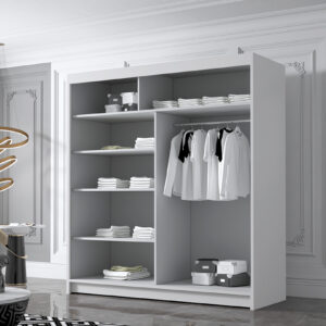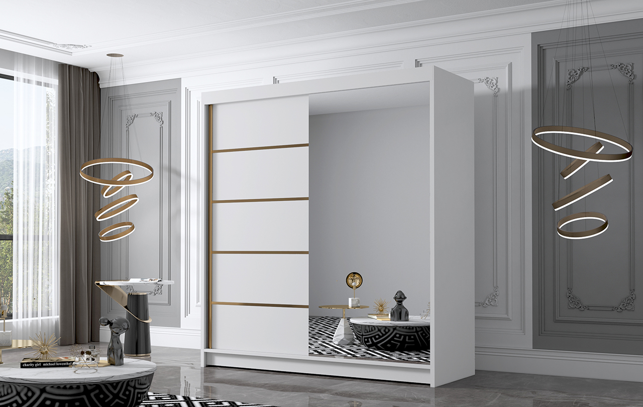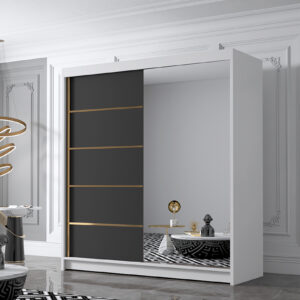 Szafa przesuwna Goldi 180 V3 , jest wykonana z płyty laminowanej. Idealnie się nada do Państwa pokoi sypialni a nawet garderoby, cechuje ją duża liczba półek, oraz długi drążek. Drzwi przesuwne są na prowadnicach marki Sevroll które są bardzo wytrzymałe i mają dożywotnią gwarancję.