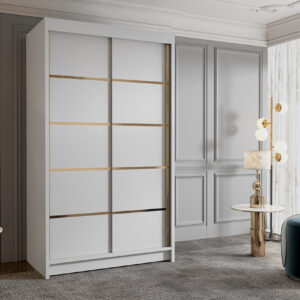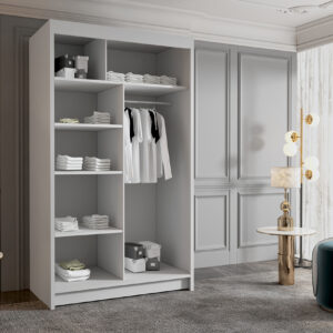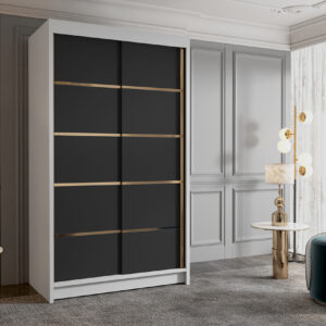 Szafa przesuwna Goldi 100 V4 , jest wykonana z płyty laminowanej. Idealnie się nada do Państwa pokoi sypialni a nawet garderoby, cechuje ją duża liczba półek, oraz długi drążek. Drzwi przesuwne są na prowadnicach marki Sevroll które są bardzo wytrzymałe i mają dożywotnią gwarancję.