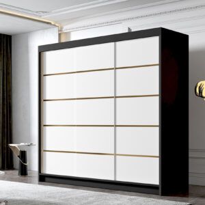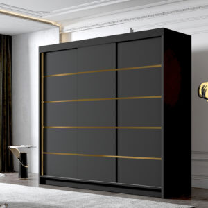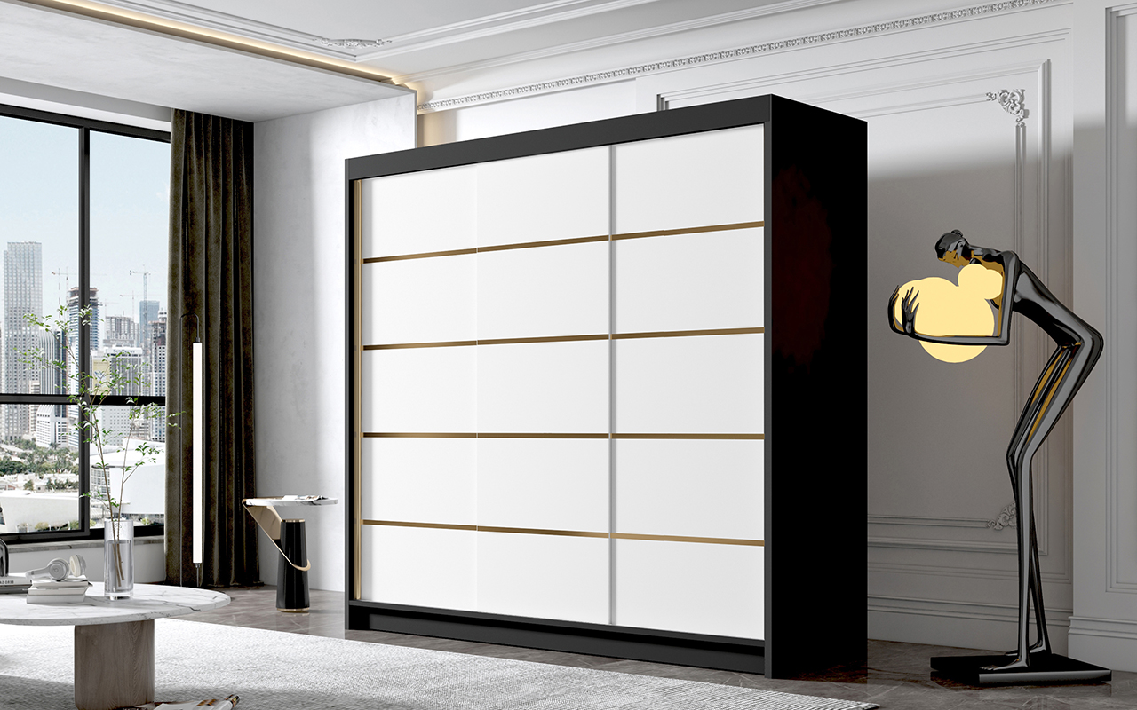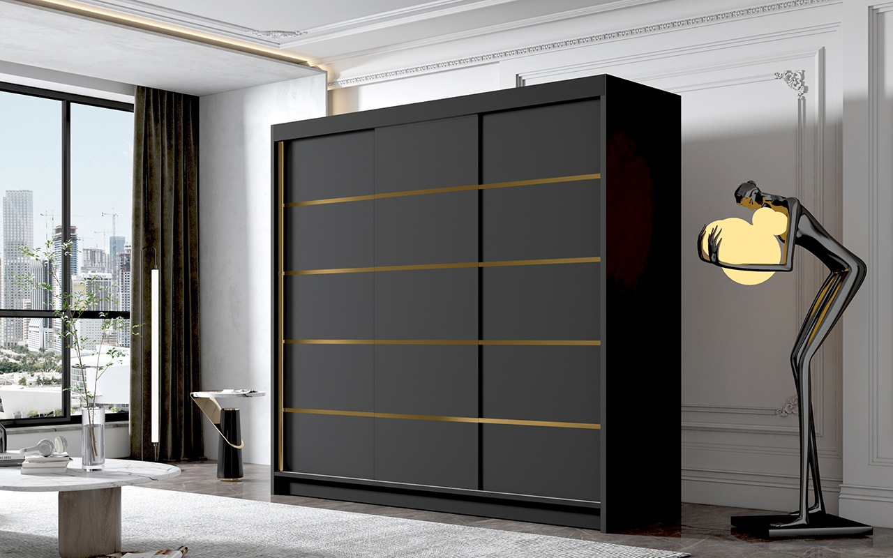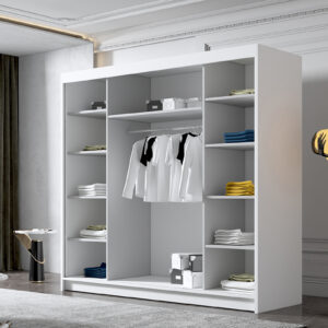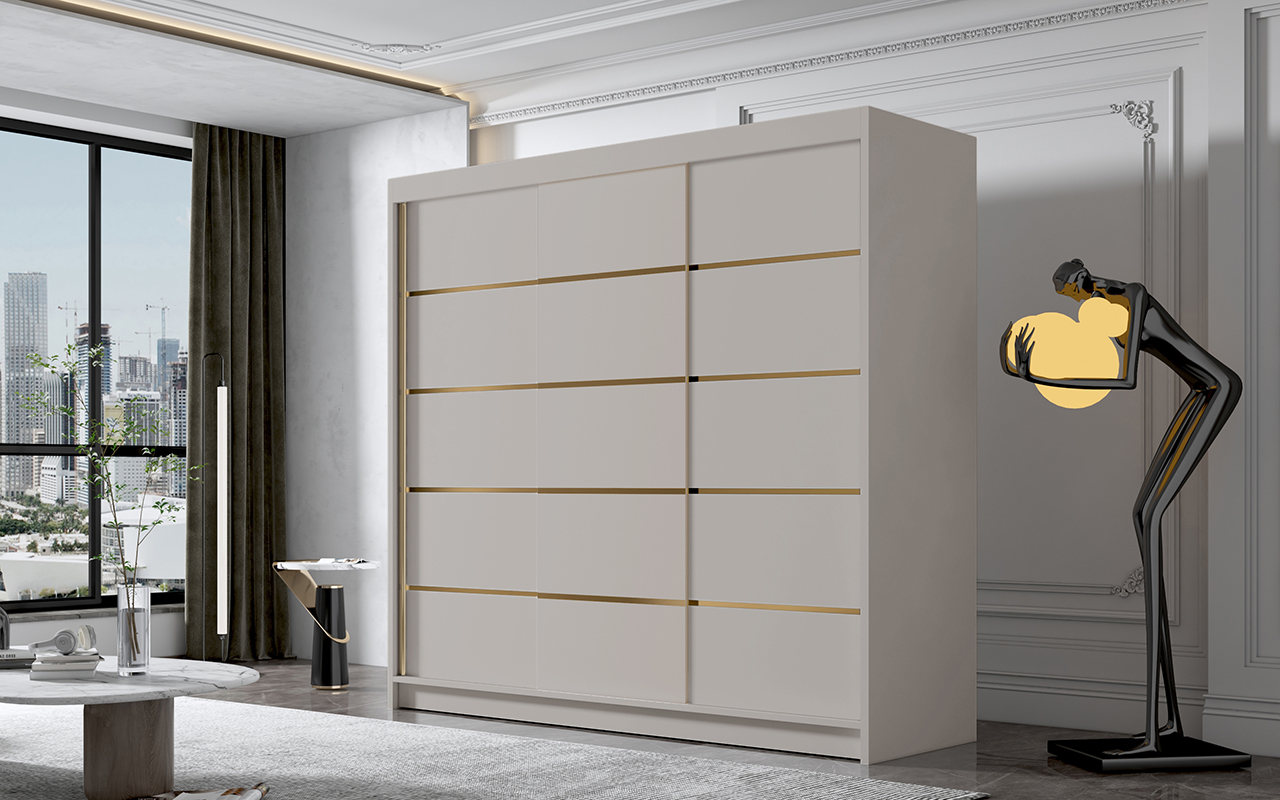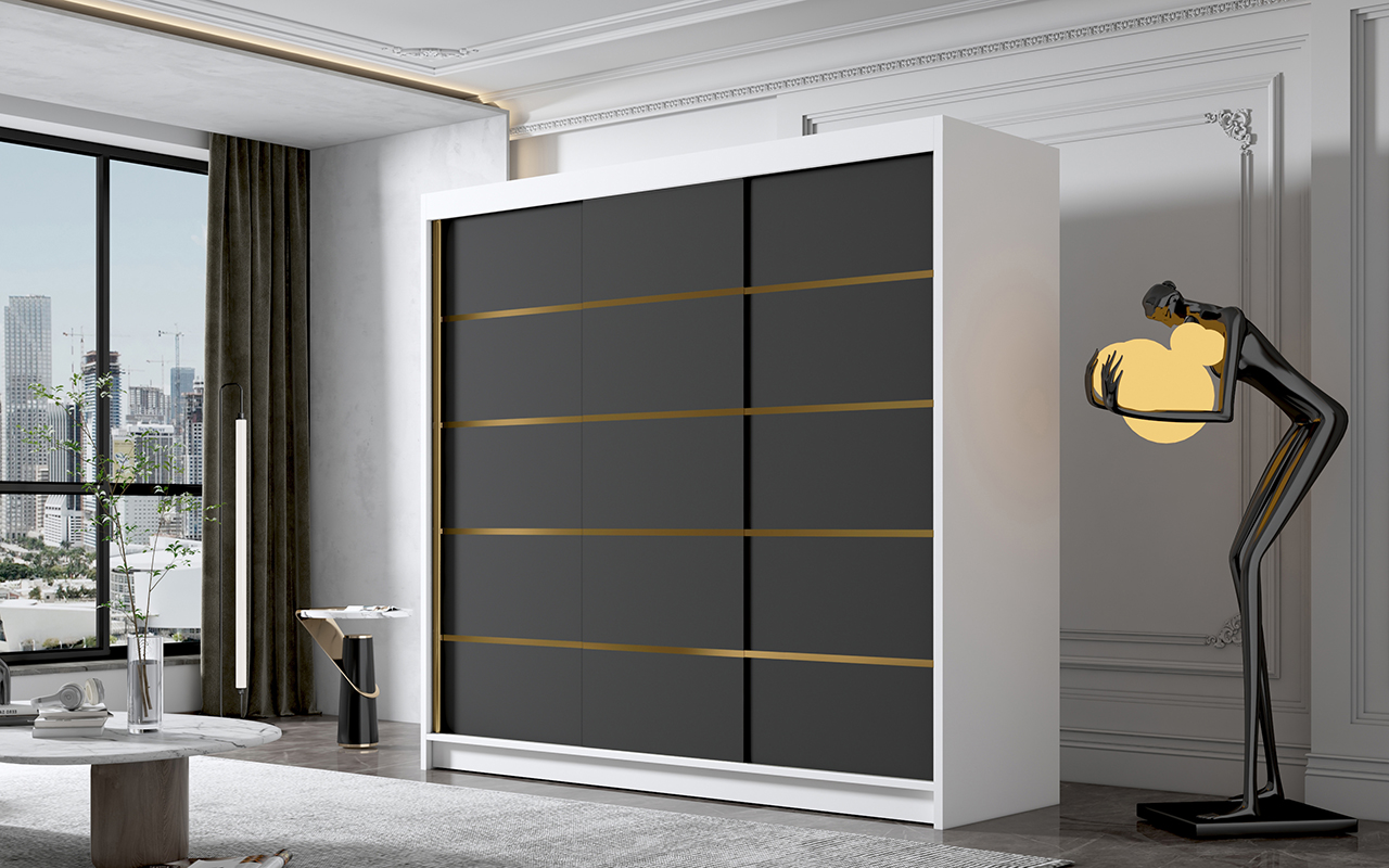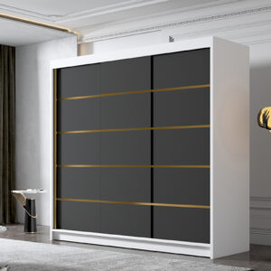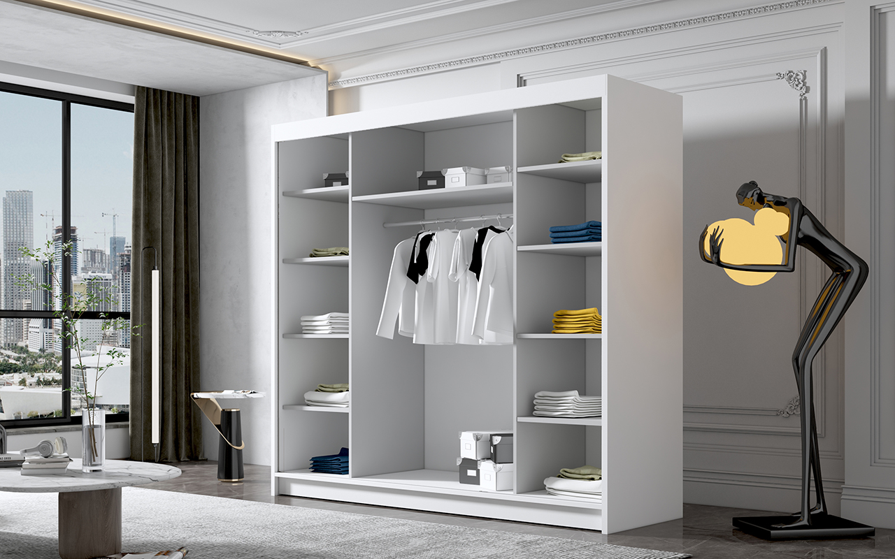 Szafa przesuwna Goldi 200 V7 , jest wykonana z płyty laminowanej. Idealnie się nada do Państwa pokoi sypialni a nawet garderoby, cechuje ją duża liczba półek, oraz długi drążek. Drzwi przesuwne są na prowadnicach marki Sevroll które są bardzo wytrzymałe i mają dożywotnią gwarancję.