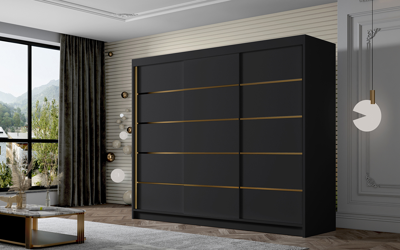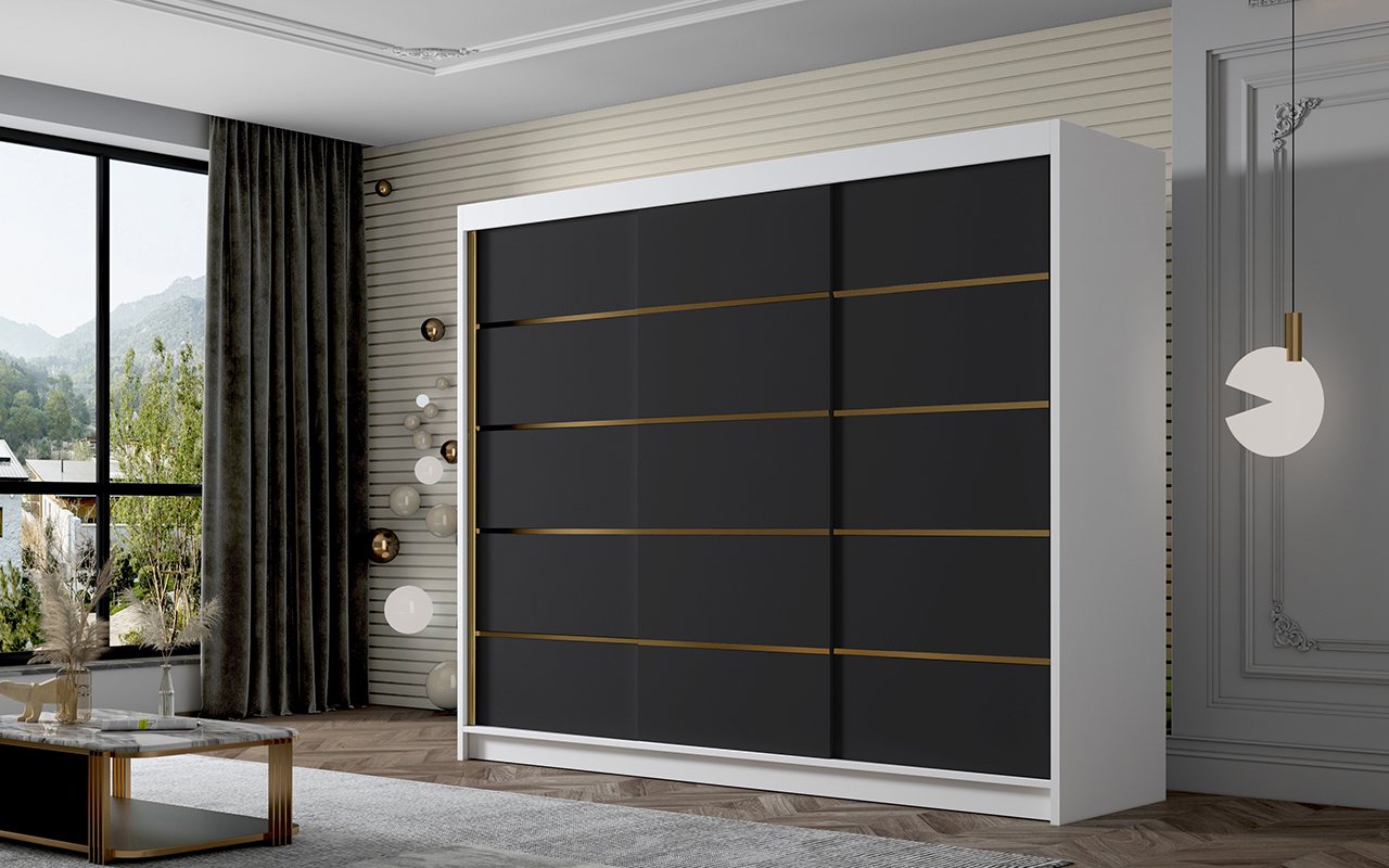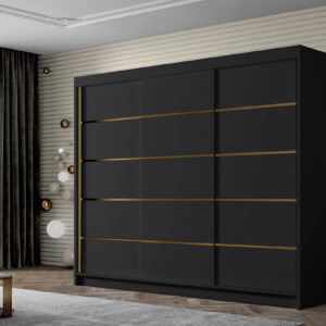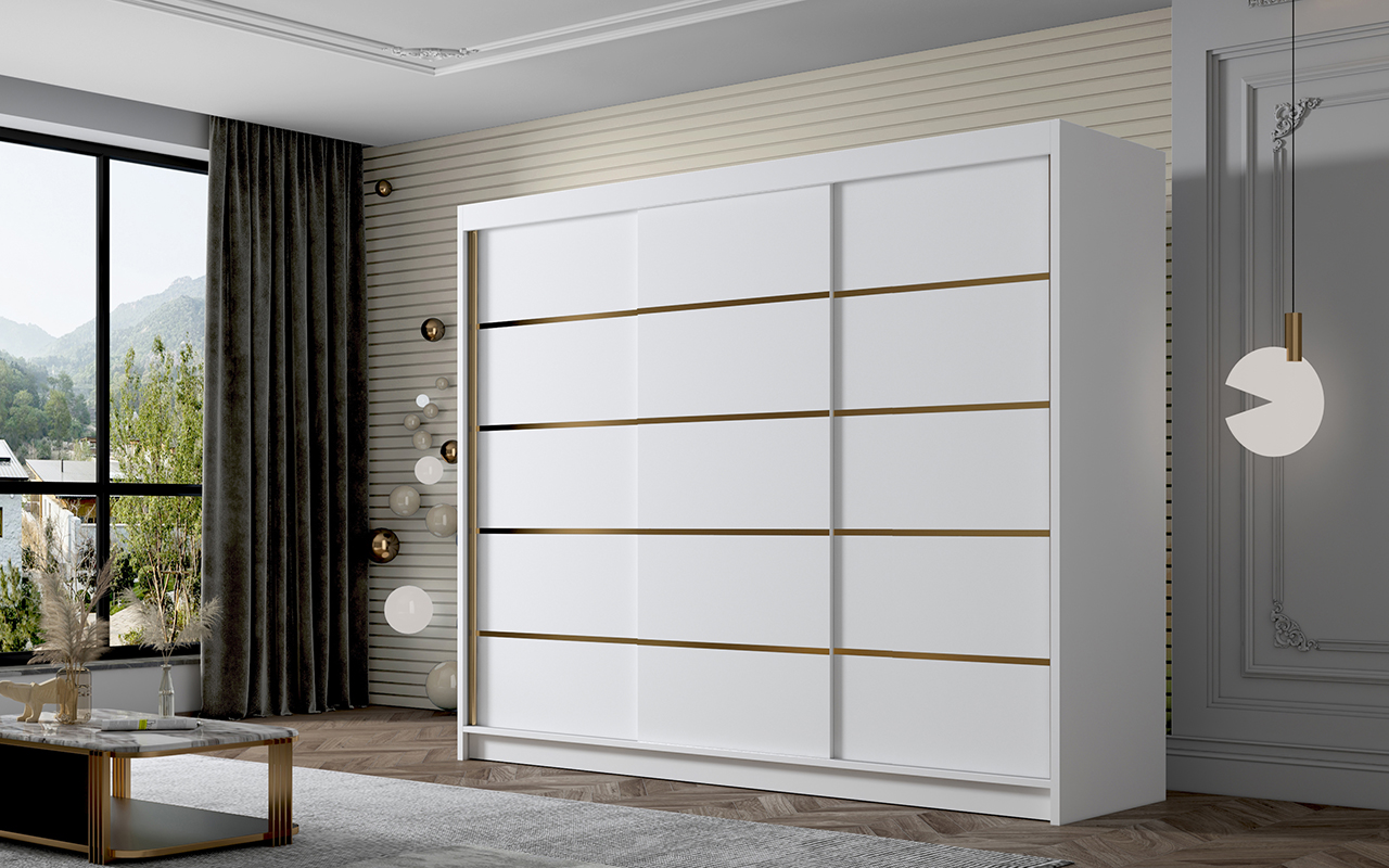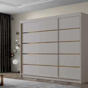 Szafa przesuwna Goldi 250 V7 , jest wykonana z płyty laminowanej. Idealnie się nada do Państwa pokoi sypialni a nawet garderoby, cechuje ją duża liczba półek, oraz długi drążek. Drzwi przesuwne są na prowadnicach marki Sevroll które są bardzo wytrzymałe i mają dożywotnią gwarancję.