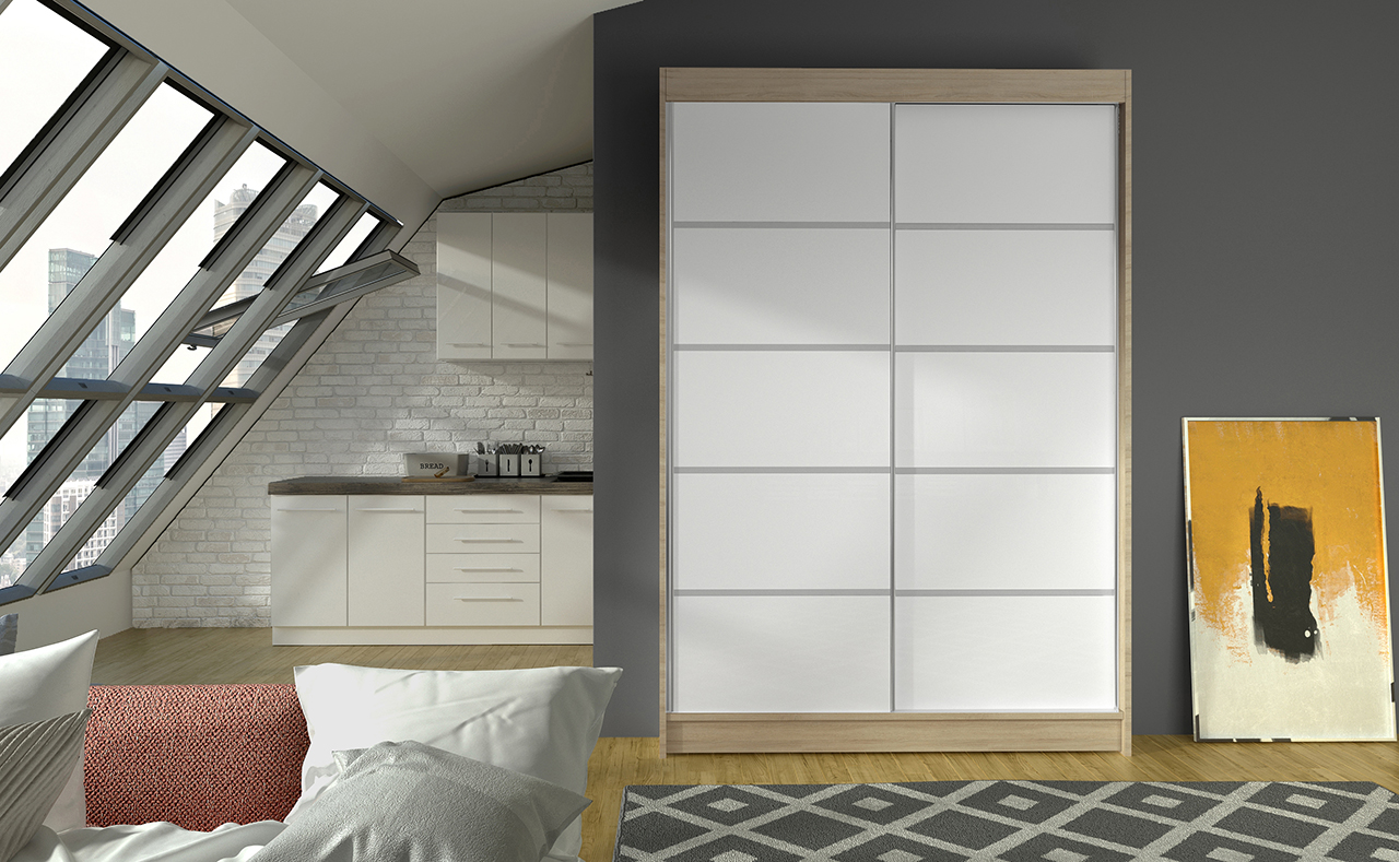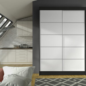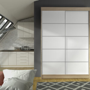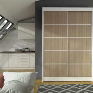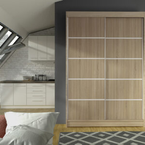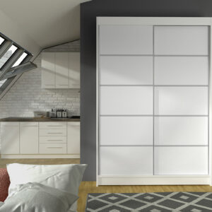 Szafa przesuwna Lima V4 , jest wykonana z płyty laminowanej. Idealnie się nada do Państwa pokoi sypialni a nawet garderoby, cechuje ją duża liczba półek, oraz długi drążek. Drzwi przesuwne są na prowadnicach marki Sevroll które są bardzo wytrzymałe i mają dożywotnią gwarancję.