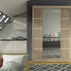 Szafa przesuwna Lima V5 , jest wykonana z płyty laminowanej. Idealnie się nada do Państwa pokoi sypialni a nawet garderoby, cechuje ją duża liczba półek, oraz długi drążek. Drzwi przesuwne są na prowadnicach marki Sevroll które są bardzo wytrzymałe i mają dożywotnią gwarancję.