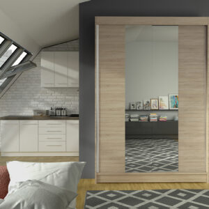 Szafa przesuwna Lima V2 , jest wykonana z płyty laminowanej. Idealnie się nada do Państwa pokoi sypialni a nawet garderoby, cechuje ją duża liczba półek, oraz długi drążek. Drzwi przesuwne są na prowadnicach marki Sevroll które są bardzo wytrzymałe i mają dożywotnią gwarancję.