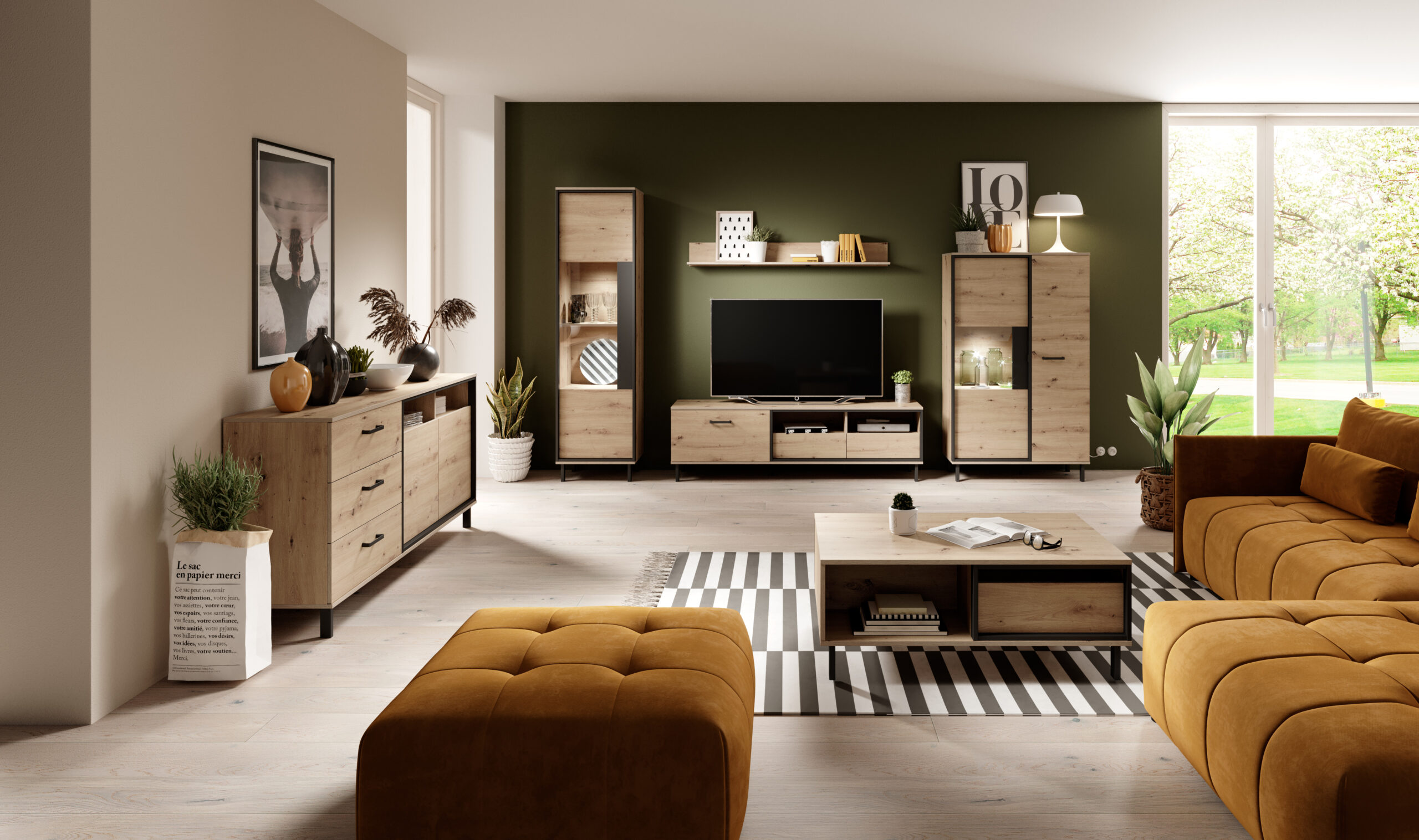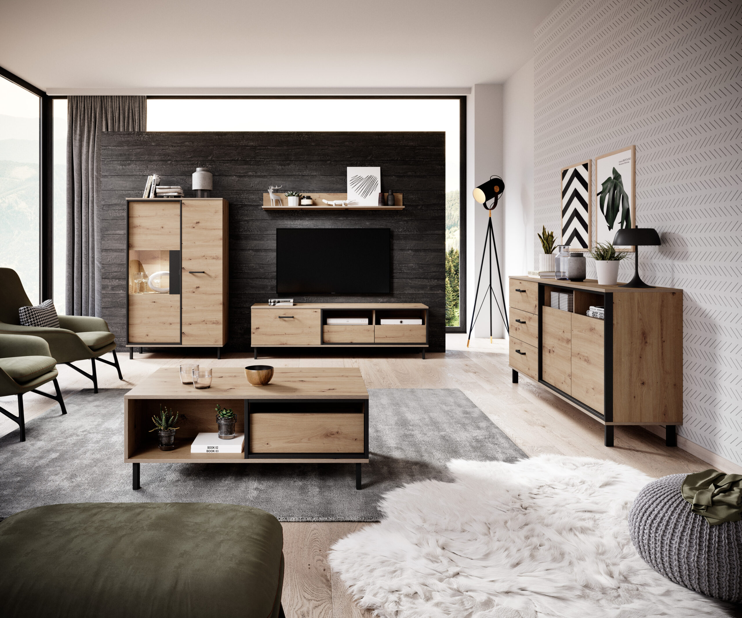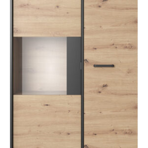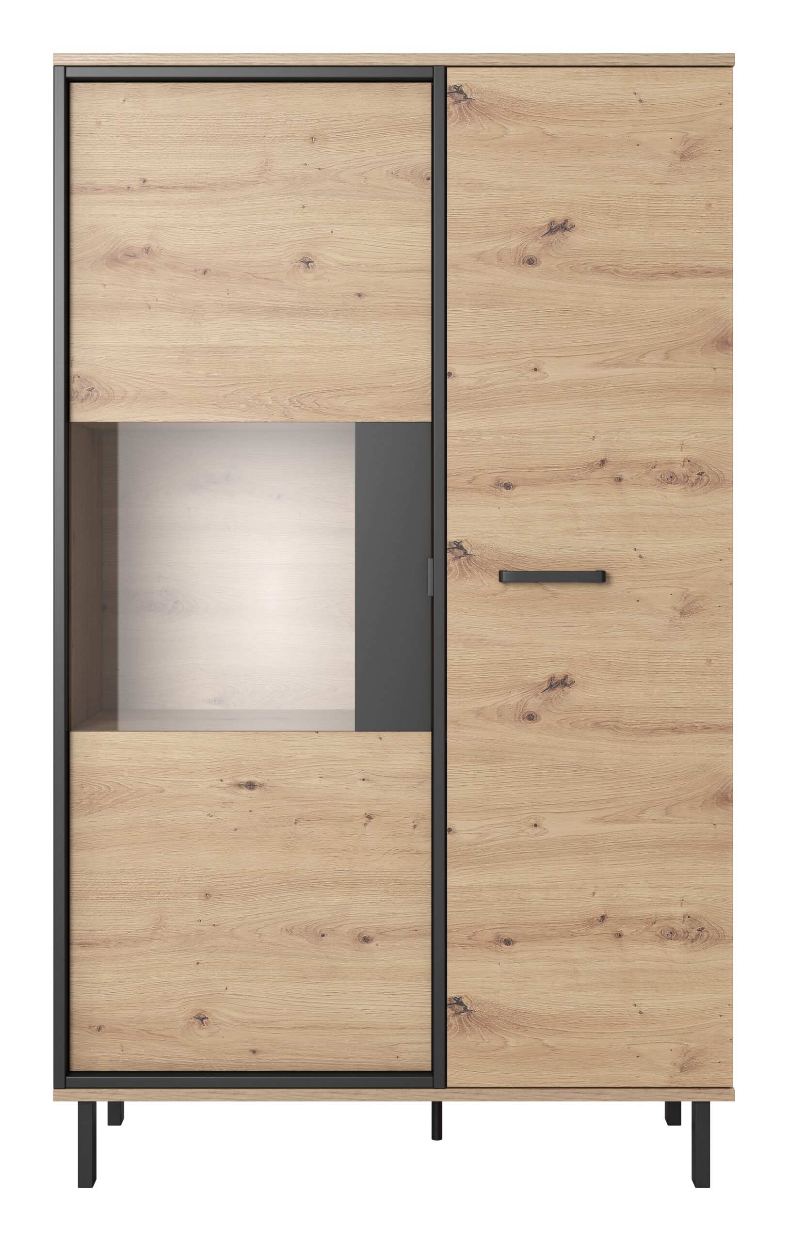 Witryna Niska Nest to naturalne dębowe drewno „przełamane” zostało kontrastową antracytową ramką, podkreślającą unikatowy wygląd mebla. Subtelne uchwyty oraz nóżki, nawiązujące do antracytowej ramki, sprawiają, że całość prezentuje się niezwykle okazale. Kolekcja NEST sprawdzi się w wielu aranżacjach, zarówno tych jasnych, nowoczesnych, jak i bardziej surowych, o loftowym charakterze.