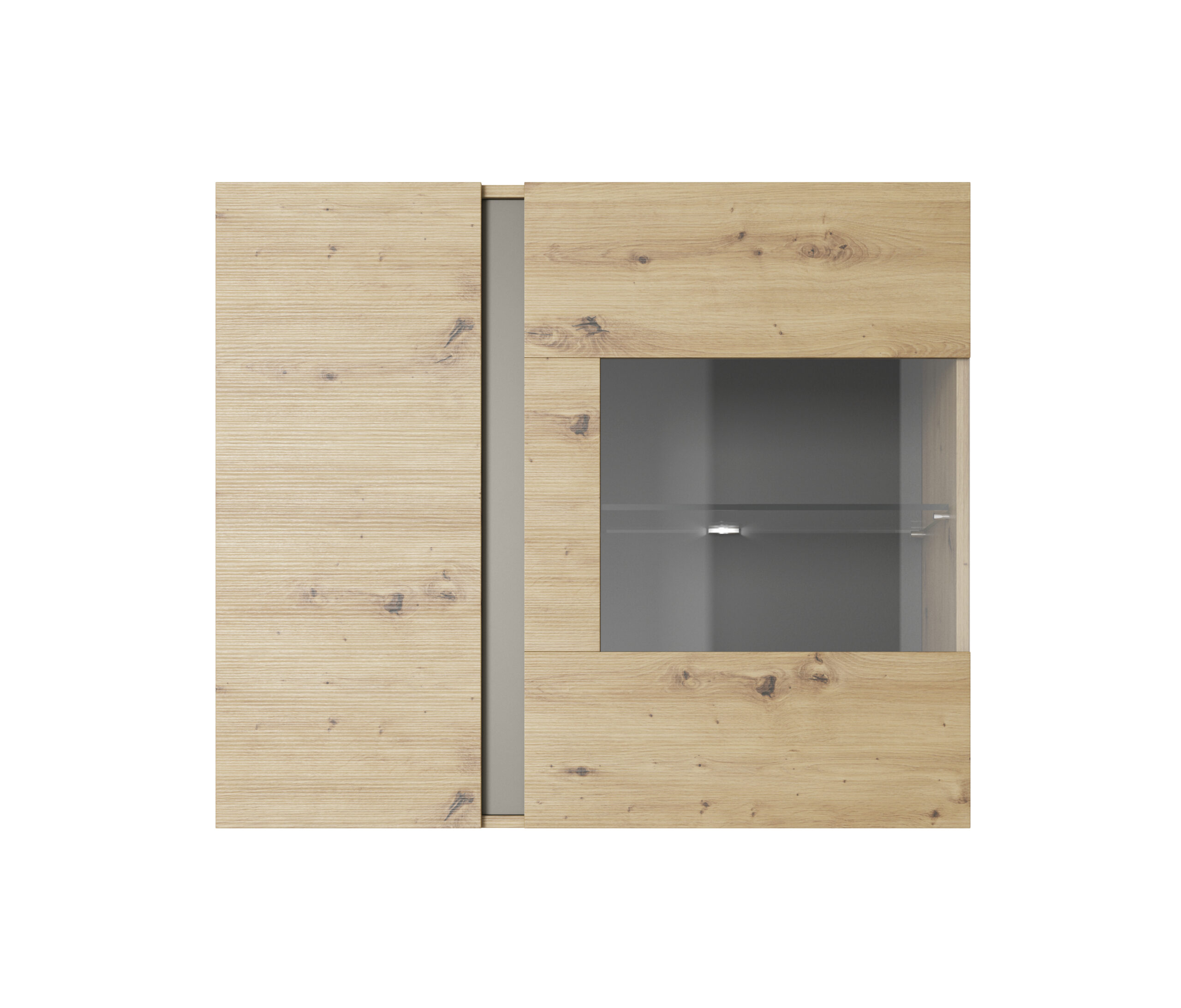 Witryna Arco z zestawu Mebli salonowych Arco, dzięki swojemu oryginalnemu wyglądowi i frontom w połysku przykuwa uwagę każdego gościa w twoim domu, Witryna jest na systemie push-to-open dzięki czemu wystarczy delikatnie nacisnąć by otwierały się fronty dodatkowo zastosowane są zawiasy z domykiem.