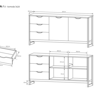 Komoda z szufladami (szer. wys. gł.) – wymiary: 161 cm / 78,6 cm / 39,6 cm
