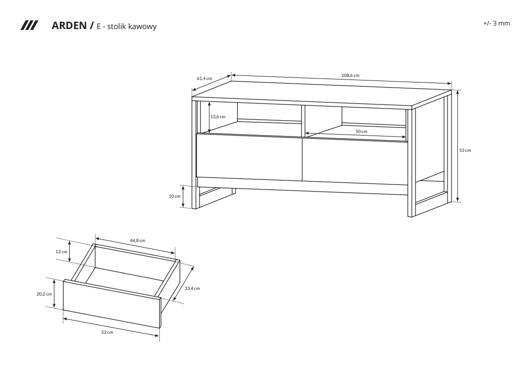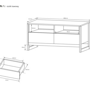 Stolik Kawowy (szer. wys. gł.) – wymiary: 108,6 cm / 53 cm / 61,4 cm