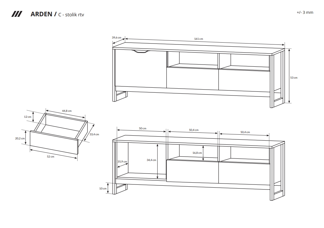 Szafka RTV (szer. wys. gł.) – wymiary: 161 cm / 53 cm / 39,6 cm
