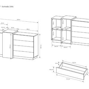 – komoda 2D4S – szer. 160 / wys. 88,5 / gł. 40,5 cm