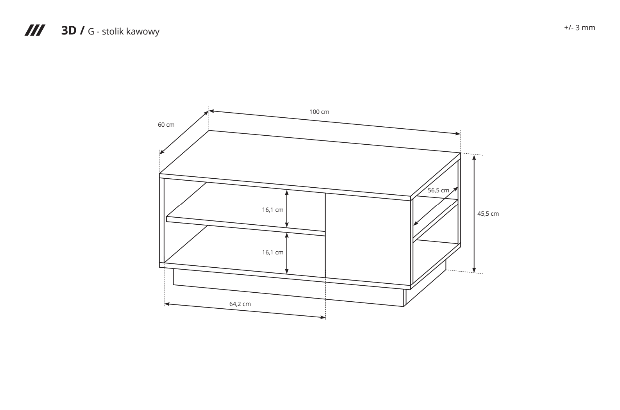 – stolik kawowy – szer. 100 / wys. 45,5 / gł. 60 cm