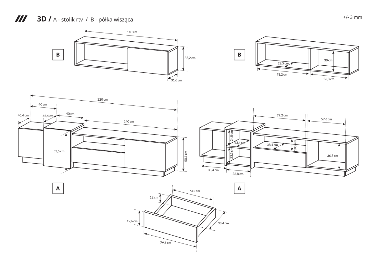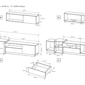 – stolik rtv – szer. 220 / wys. 53,5 / gł. 45 cm