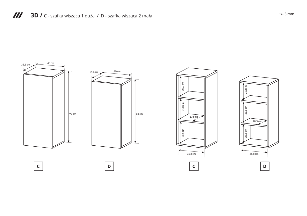 – Szafka wisząca 1 – szer. 40 / wys. 93 / gł. 36,6 cm